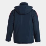 Diseñado para abrigarse en los entrenamientos deportivos en días de frío. Este anorak te mantiene cómodo y cálido para que nada te frene. Todo ello sin añadir peso extra para que puedas moverte con libertad. Este abrigo incorpora cierre completo con cremallera para poner y quitar rápidamente, cuello alto para proteger la zona del frío y capucha escondida con cordones para poder ajustarlo y evitar la entrada de frío. Esta capucha a su vez es desmontable. Además, cuenta con bolsillos laterales con cierre de botón para que puedas guardar pequeños objetos de forma segura y un bolsillo extra interior con cierre adhesivo. Se ha confeccionado con tejido ligero, impermeable y resistente a los roces y caídas. Incorpora tejido polar en el interior que mantiene la calidez del deportista a pesar del frío y la humedad. Cabe destacar que no impide la libertad de movimiento a pesar del volumen. En el diseño, presenta pequeños cortes de contraste a color en los hombros. Logotipo Joma bordado