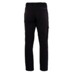 Corte técnico, cintura semi elástica con cierre de botón corchete y cinturón elástico ajustable, tres bolsillos con cremalleras bicolor invertidas, tejido especial y goma ajustable en bajos, logo bordado.