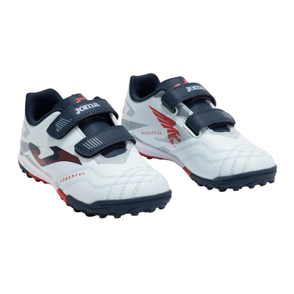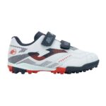 Bota de Fútbol Joma Powerful Junior para césped (superficies sintéticas y moqueta). Se trata de una versión para los niños que quieren mejorar su técnica y progresar en el fútbol. La parte superior está fabricada con un material sintético de PVC duradero, muy ligero, flexible e impermeable para que el calzado no pese. Tienen una lengüeta ligera y cordones clásicos que proporcionan el nivel de sujeción adecuado para su uso. En el talón, incorporan un contrafuerte EXO COUNTER para proteger y reforzar la zona. La suela exterior está fabricada con caucho DURABILITY de alta calidad con buena resistencia a la abrasión y agarre a la superficie. Con un structure polivalente que reduce la presión de la zancada y proporciona un buen apoyo. Transición natural de la zancada gracias a su flexibilidad.