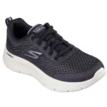Disfruta de una comodidad limpia y acolchada con Skechers GO WALK® Flex – Kali. Este diseño vegano con cordones para caminar presenta una parte superior de malla técnica, acolchado ligero ULTRA GO®, una plantilla Skechers Air-Cooled Goga Mat® y Flex Pillars® para mayor estabilidad y movimientos cross-training