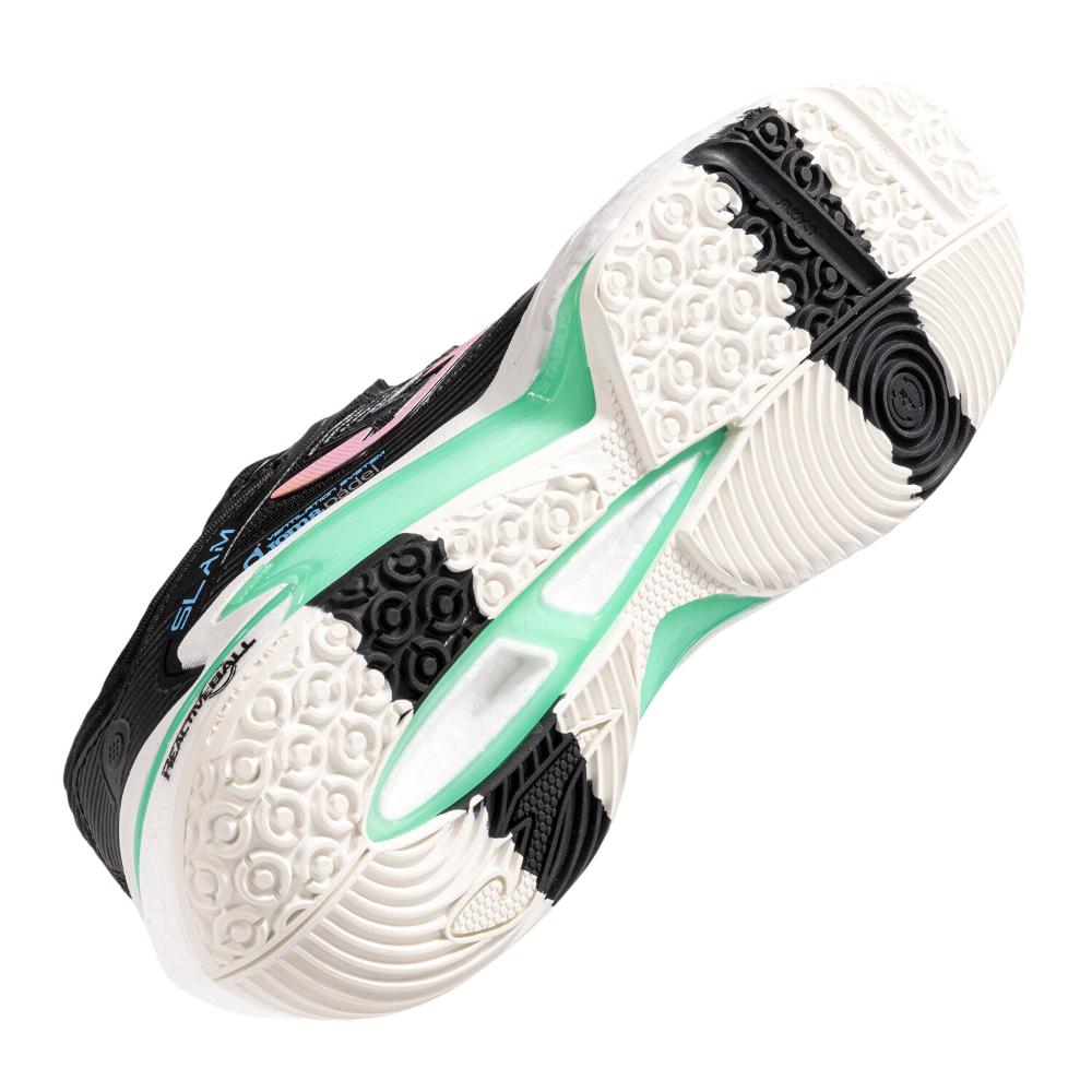 Zapatillas de pádel para mujer. Alta gama, máximo rendimiento y tecnología en unas solas zapatillas desarrolladas para el pádel profesional. Destinadas a jugadoras con buena técnica que necesitan lo máximo en amortiguación, estabilidad y protección. Testadas por jugadores como la ex nº 1 del mundo Carolina Navarro y Juanlu Esbrí.