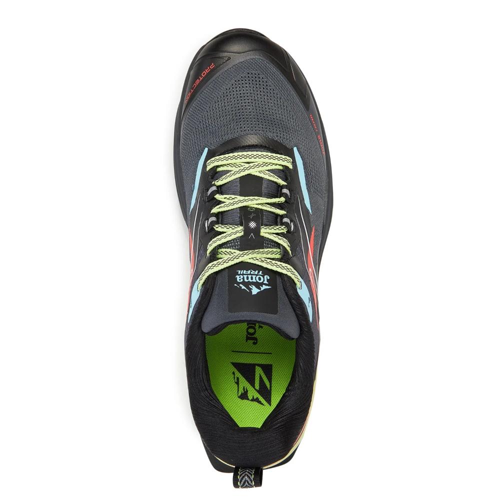 Upper elaborado principalmente en mesh transpirable con acabado en Jacquard. Asegura la evacuación del sudor gracias a la tecnología VTS. Para ajustar el corte, se ha empleado el sistema termosellado sin costuras JOMA SPORTECH.